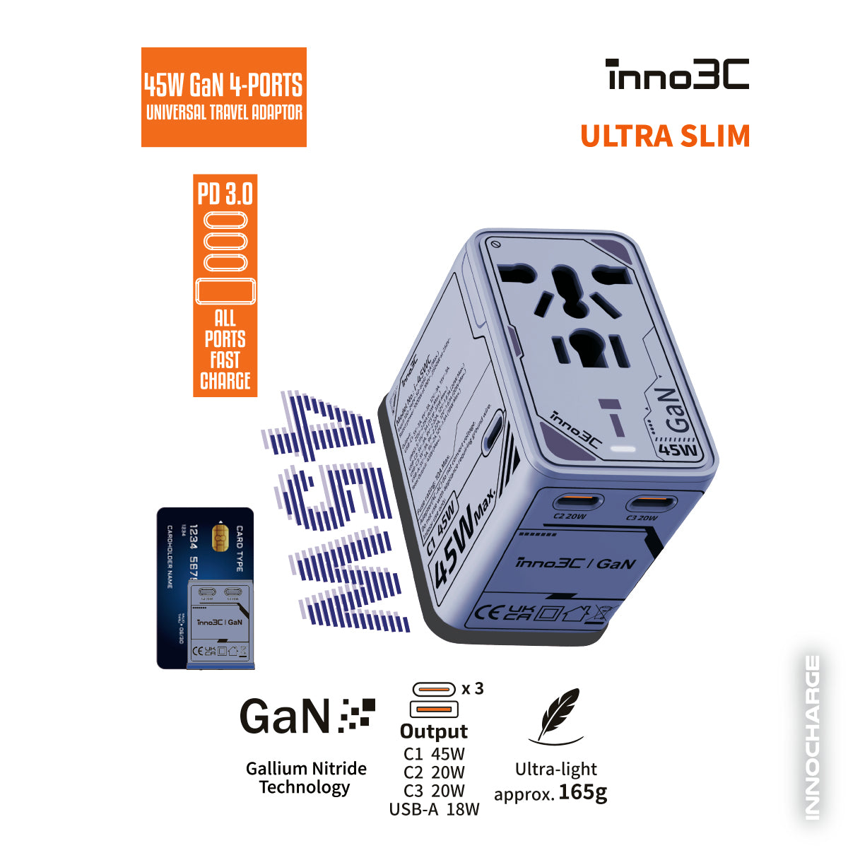 inno3C 45W GaN 4-Ports AC Socket Universal Travel Adaptor i-45WC