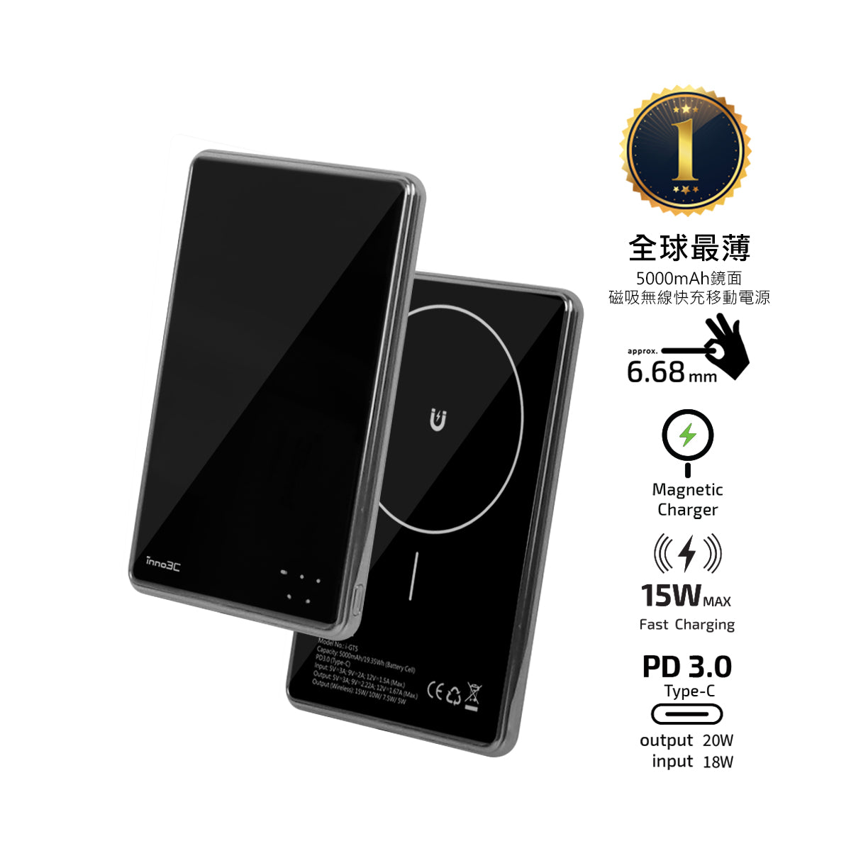 *Note: As of August 20, 2024, the i-GT5 Ultra Slim Magnetic Wireless Charging Power Bank (5000mAh) is the thinnest in Hong Kong, featuring a 5000mAh capacity battery, a mirror-like surface, magnetic, and fast wireless charging power bank.
