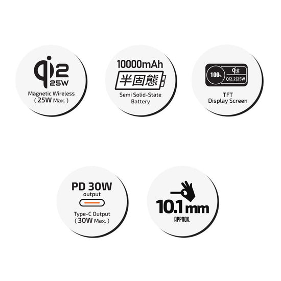 - inno3C [ CCC 3C CE ] Qi2.2 Semi-Solid State Magnetic Wireless Power Bank 10000mAh M17 x 1