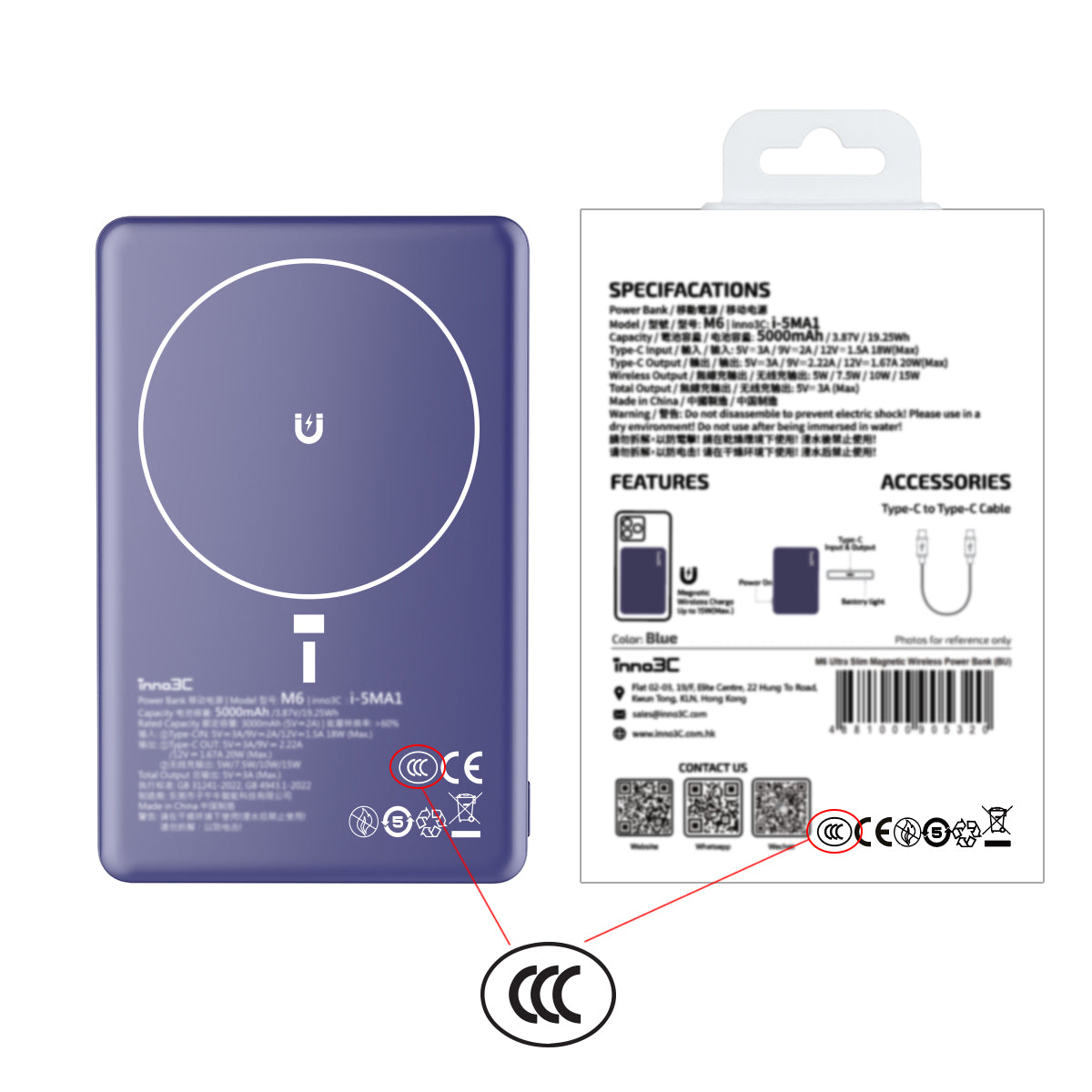 inno3C [ CCC 3C CE ] Ultra Slim 8.75mm Magnetic Wireless Power Bank M6 (Blue) | PD3.0 20W Type-C Two-way Fast Charging Portable Charger
