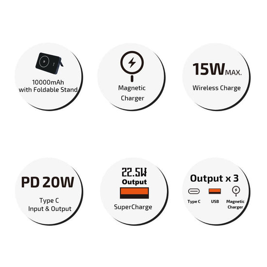 - Magnetic Wireless Battery Pack Power Bank with Stand 10000mAh i-BM10
