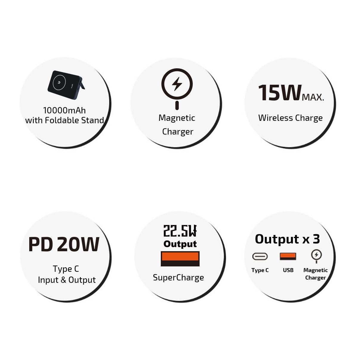 MagSafe Magnetic Power Bank 10000mAh ︱Magnetic Wireless Power Bank ︱MagSafe Power bank︱Magnetic Wireless Battery Pack Power Bank with Stand 10000mAh i-BM10