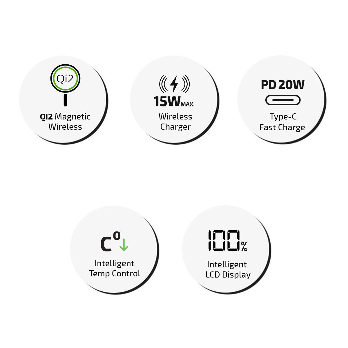 CCC 3C CE 安全認證 可帶上飛機 Qi2 快速充電 超薄 磁吸無線充電 行動電源 5000mAh M0 OLED ︱ Pass-Through 直通充電 移動電源︱Type-C PD3.0 雙向快充 有線無線同時充電 尿袋︱LCD屏顯示電量 充電寶︱外置電源︱流動充電器 ( 黑色 )
