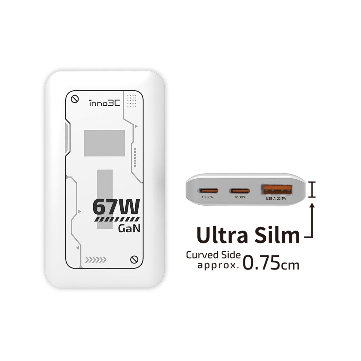 The Smallest 67W GaN Travel Charger in the world* (Ultra-slim curved edge approx. 0.75cm)|