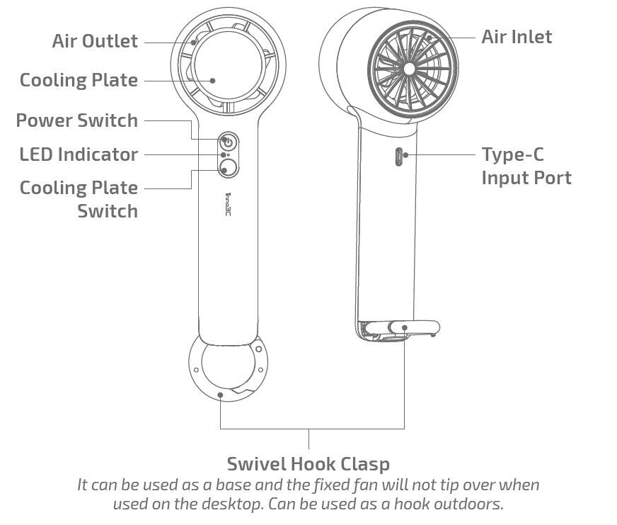 - 掛勾可作支架桌面使用,無論是在辦公室、家裡、或戶外隨時隨地享受涼風。