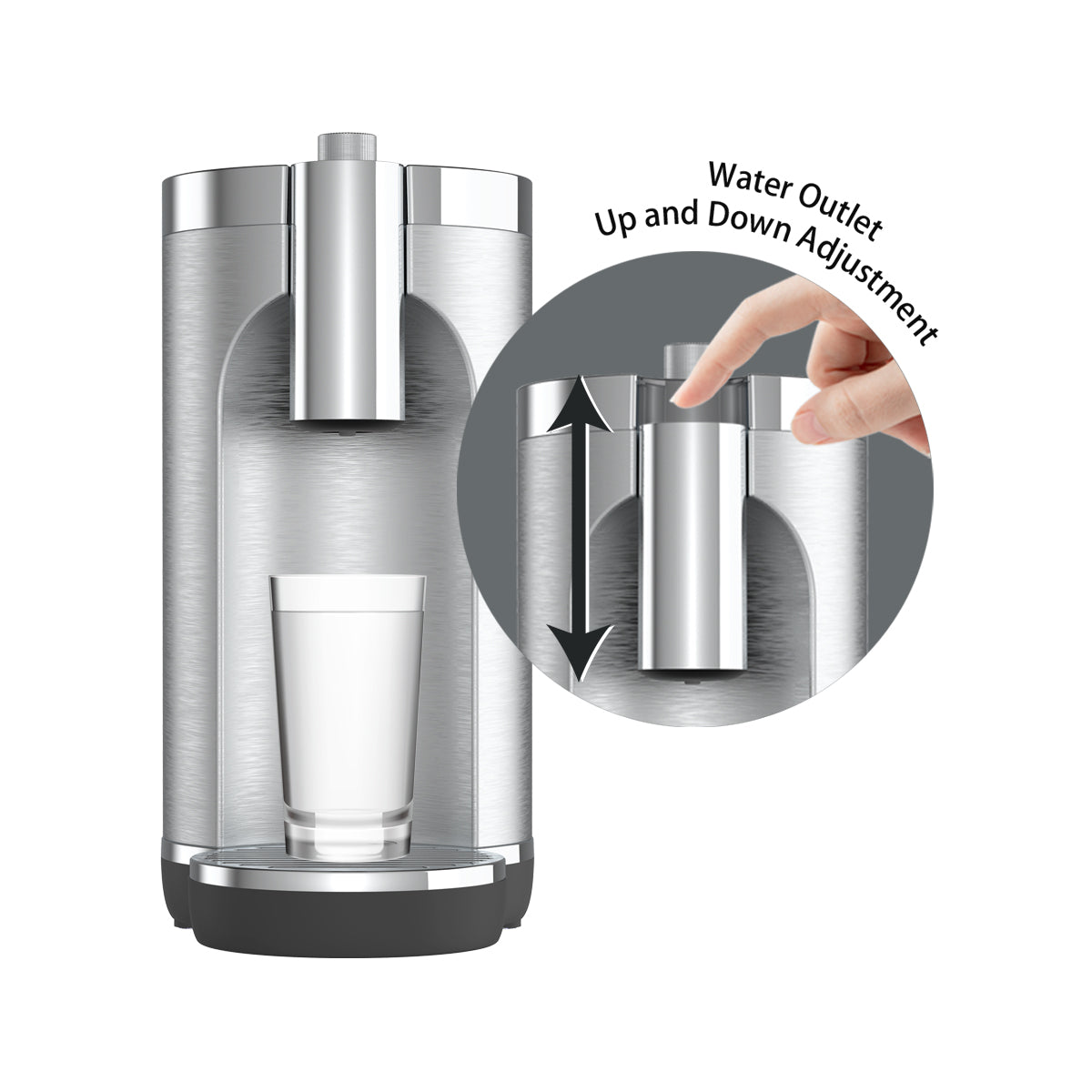 - 可調節升降的出水口,可配合高低不同的水杯 ; 大小不同的水壺,避免了斟水時水花四濺,弄濕地方。